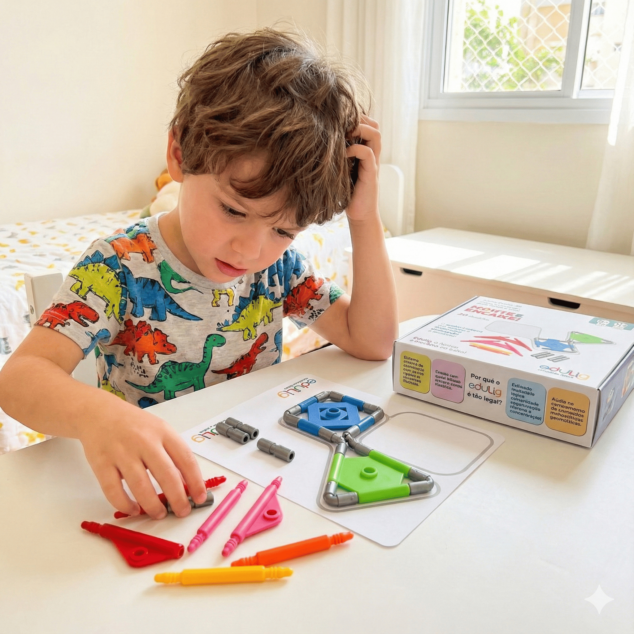 Adequado desde crianças em fase escolar até adultos que gostam de desafios de lógica, o Quebra-Cabeça "Monte e Encaixe" Edulig é fabricado com materiais atóxicos e duráveis, garantindo diversão segura e duradoura.
