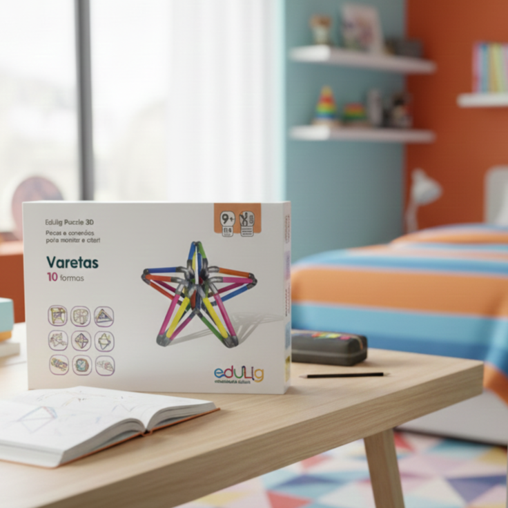 Descubra um brinquedo que transforma criatividade, lógica e geometria em uma experiência prática e envolvente. O Kit Edulig Varetas é um puzzle 3D que convida crianças, jovens e adultos a explorar o mundo das formas por meio da construção, do desafio e da imaginação.